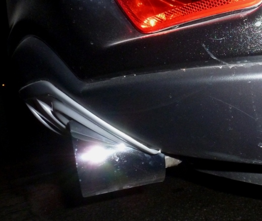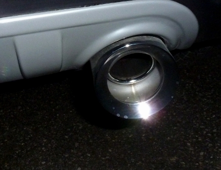 So wie es aussieht hast Du die Blende nicht komplett aus den Auspuff geschoben.