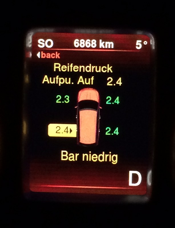 Bei mir kam gestern die Meldung das ich nur 1,9Bar auf einem Reifen hätte.