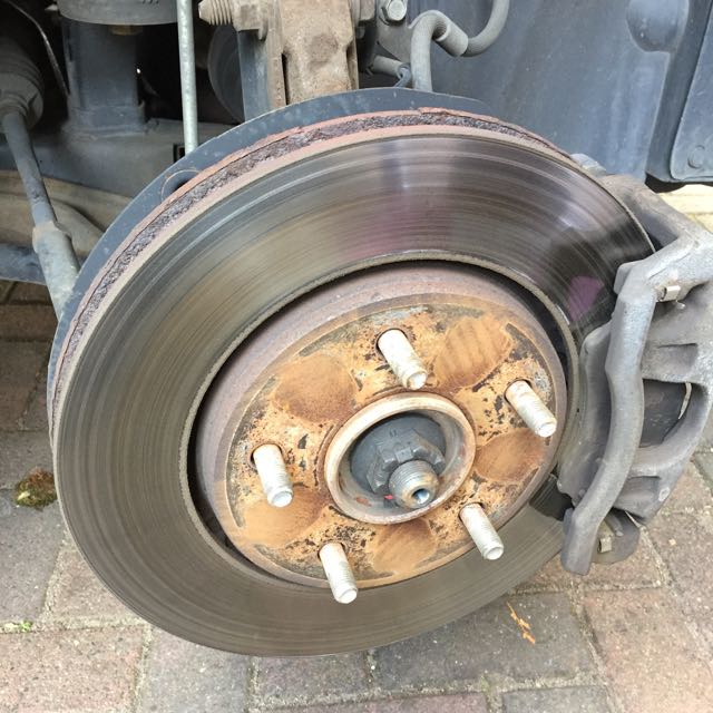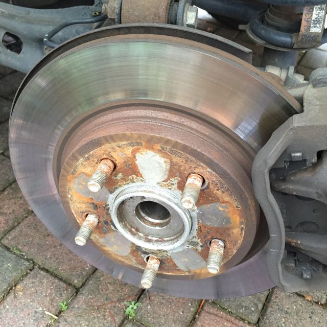 Es ist mal wieder Zeit für ein Update: Heute war Reifenwechsel angesagt und damit eine gute Gelegenheit, auch mal einen Blick auf die Bremsen zu werfen. Die EBC-Bremsscheiben und -beläge sind an der Vorderachse jetzt 1 ½ Jahre alt und haben 46.000 km runter. Es gibt beim Bremsen nach wie vor keinerlei Vibrationen oder Unwucht, die Bremse spricht toll an und verzögert auch ordentlich, wie ich neulich erst wieder feststellen musste. Einziger Kritikpunkt wäre vielleicht, dass die Scheiben vorne schon ordentlich verwittert sind, aber sie sollen ja keinen Schönheitspreis gewinnen.