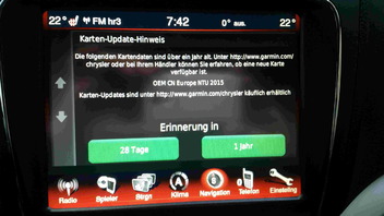 • Meine Meldung sieht ein bisschen anders aus (das mit den Auswahlfeldern 28 Tage/1 Jahr habe ich nicht). Aber darauf aufmerksam gemacht, dass mit veraltetem Kartenmaterial rumfahre, hat mich mein UConnect auch schon mehrfach... nichts weiter als eine Werbeeinblendung...