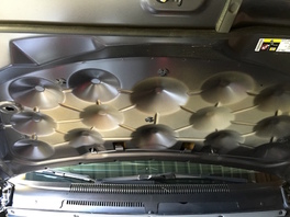 So sieht das Innenteil der Haube eines PKW's üblicherweise aus. (siehe Bild, deutscher Automobilhersteller, Premiumsegment)