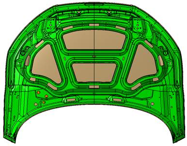 So sieht das Innenteil der Haube eines PKW's üblicherweise aus. (siehe Bild, deutscher Automobilhersteller, Premiumsegment)