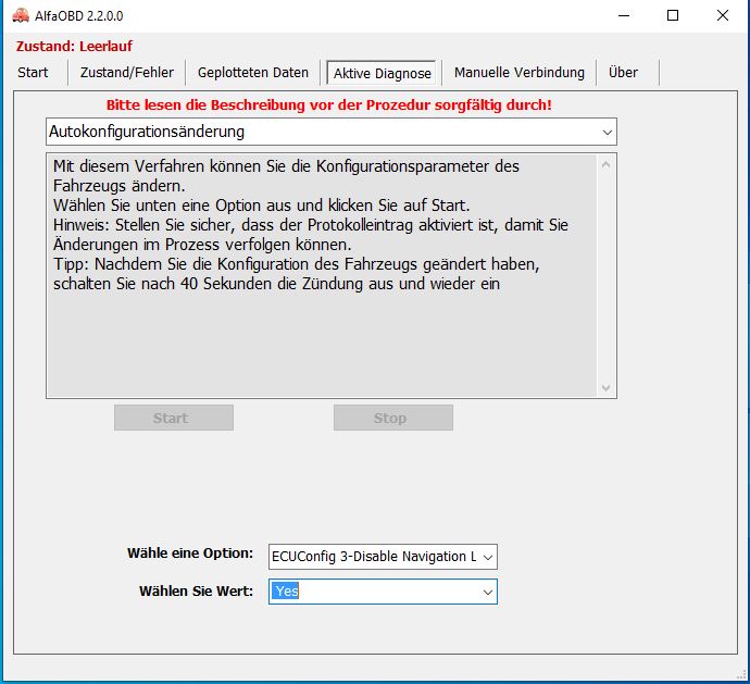 Ich möchte gern mit AlfaOBD mein Navi entsprechend programmieren, dass ich das Ziel während der Fahrt eingeben kann.